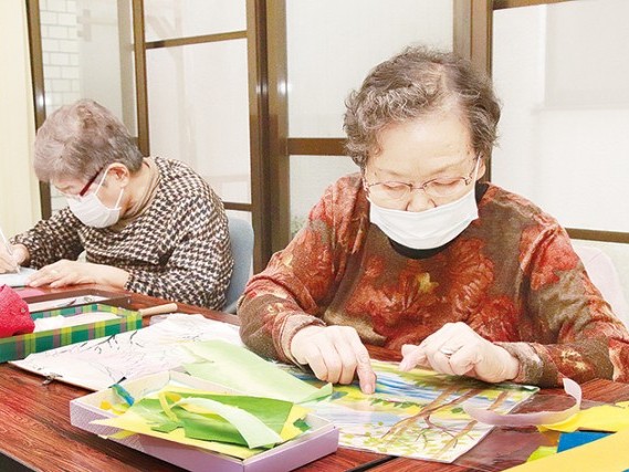 神経集中させ貼り付ける 新宮市社会福祉協議会が行うカルチャーサロン「ちぎり絵教室」