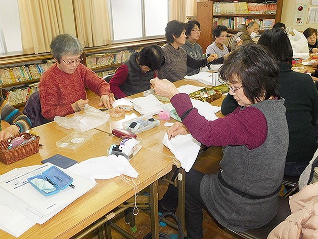 手際よく雑巾を縫い上げる参加者