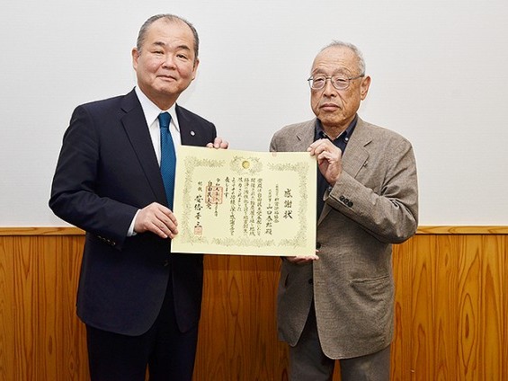 新宮徐福協会の山口泰郎代表理事(73)はこのほど、自由民主党の阿倍晋三総裁(=首相)より送られた感謝状を受け取った。自民党本部で6月に行われた物産展で、徐福関連商品の販売を行ったことに伴うもの。山口代表理事はこれを励みに「あらゆ... 続きを読む