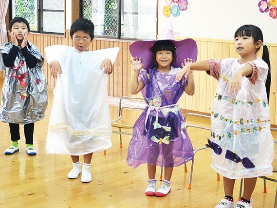 新宮市立王子幼稚園で7日、同市ALT・シンシア先生、同市職員・岩本桃永子さんを招いて「英語で遊ぼう」が実施された。ほし組(5歳児)の園児11人が魔女や吸血鬼などのかわいらしいハロウィーンコスチュームに身を包み、ゲームや歌を楽しみ... 続きを読む