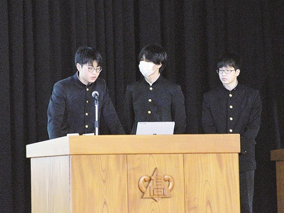 和歌山県立新宮高校体育館で13日、令和6年度探究成果発表会が開かれた。1年間取り組んできた分野別探究のまとめとして、2年生の代表10グループがステージで発表。観光、環境・防災、医療、歴史、人権・平和など、それぞれのカテゴリーで調... 続きを読む