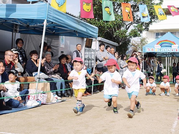 新宮市の私立たづはら保育園は26日、同園で令和元年度運動会を実施。0~5歳児76人は、秋晴れの中、保護者や祖父母の前を、力いっぱい走り、日頃の成果を披露した。 開会式後、園児は元... 続きを読む