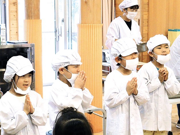 給食試食会で交流深める 丹鶴幼 保護者同士意見交換も