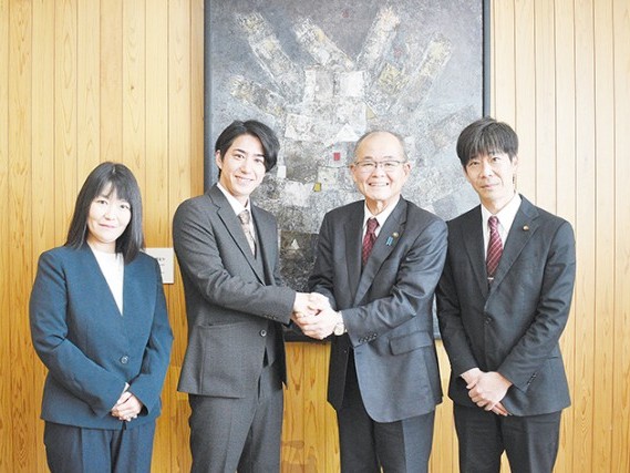 新宮市出身で、タレントの山之内すずさんらが所属するプロダクション会社を経営する山城裕司さん(35)=東京都=が4日、田岡実千年市長を表敬訪問した。同日に行われた「新宮市二十歳の集い」にゲスト出演するために帰省し、若者らに「今を一... 続きを読む