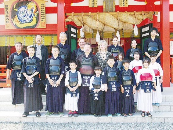 一歩ずつ輪広げる フランスから、新宮剣友会会長の宮戸伸之さん(剣道八段教士)の指導を受けるため、今年も