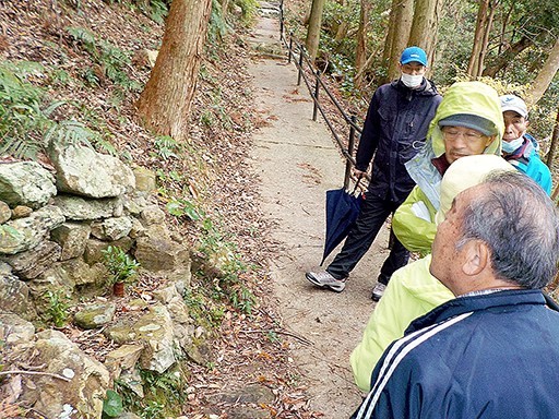 岩屋寺(左側の石積み)を見学