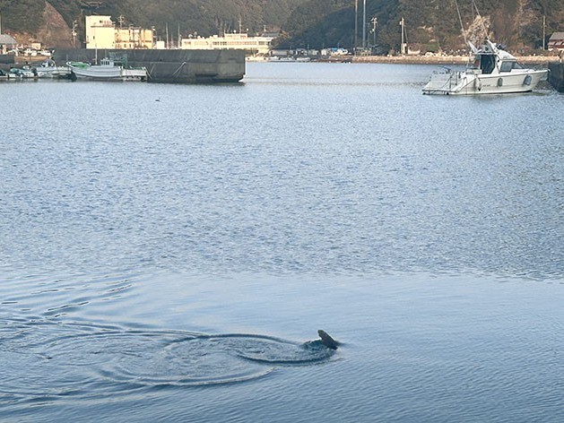 太地町の太地漁港湾内で27日午前7時30分ごろ、生物にも見える物体が海面から尾ひれのようなものを出して回遊している様子が見られた。遠目にはイルカにも見えるが、泳ぎが直線的でないのと、尾ひれに見える部分に凹みがあるため、この写真だ... 続きを読む